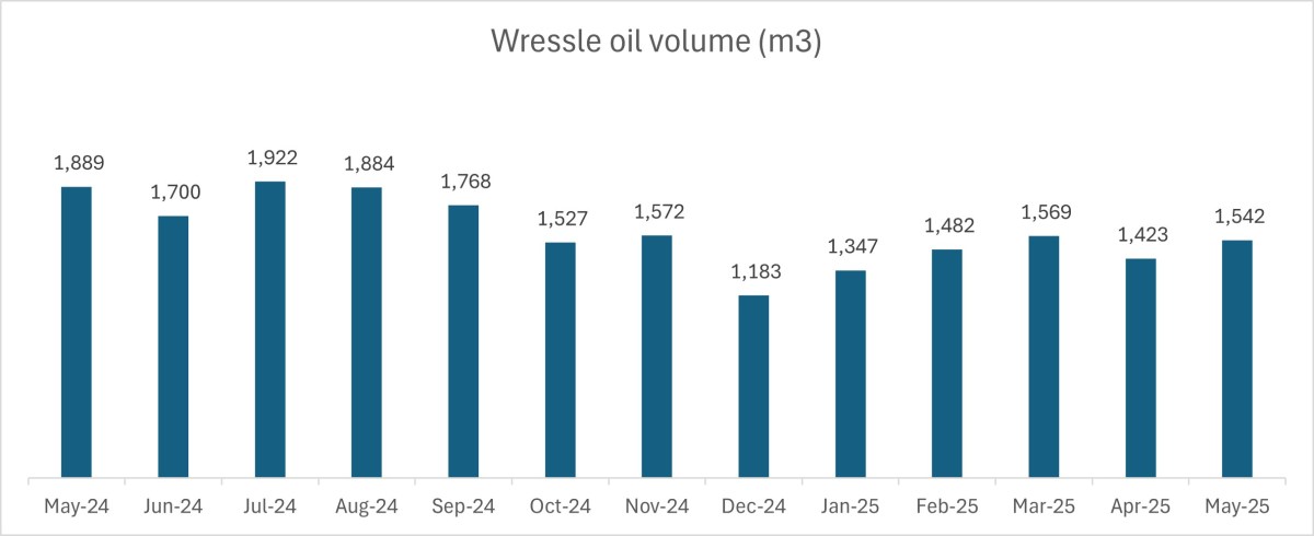 April 2025 12,441bopd, March 2025 12,310 bopd, February 2025 12,651bopd, January 2025 12,393bopd, December 2024 12,538bopd, November, 12,395bopd, October 11,000bopd, September 11,193 bopd, August 11,776 bopd, July 12,314 bopd