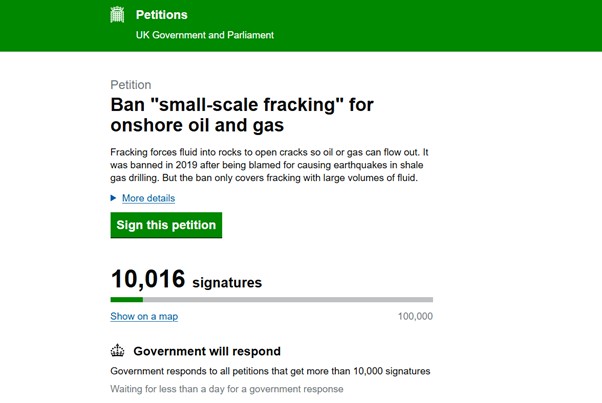 An official online petition calling for a ban on all forms of fracking has passed an important milestone.