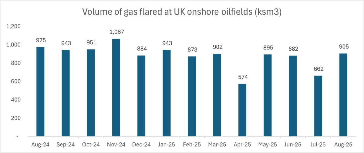Volume of flared gas at UK onshore oil fields: 905ksm3