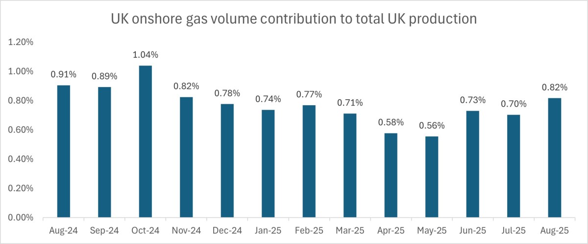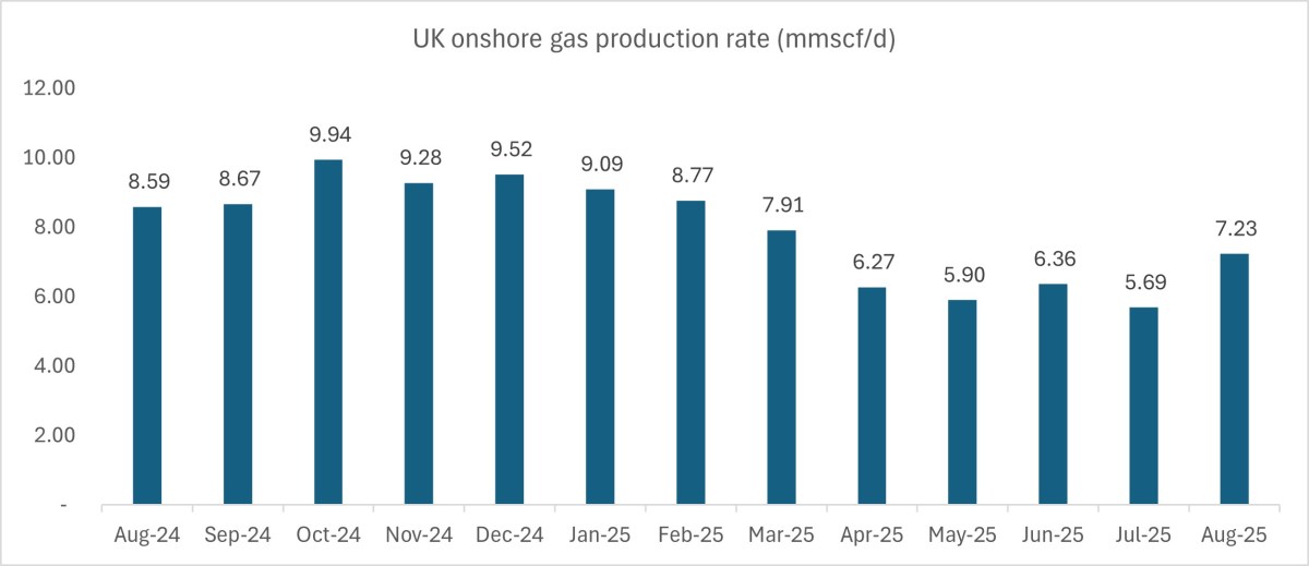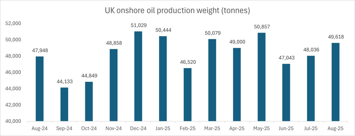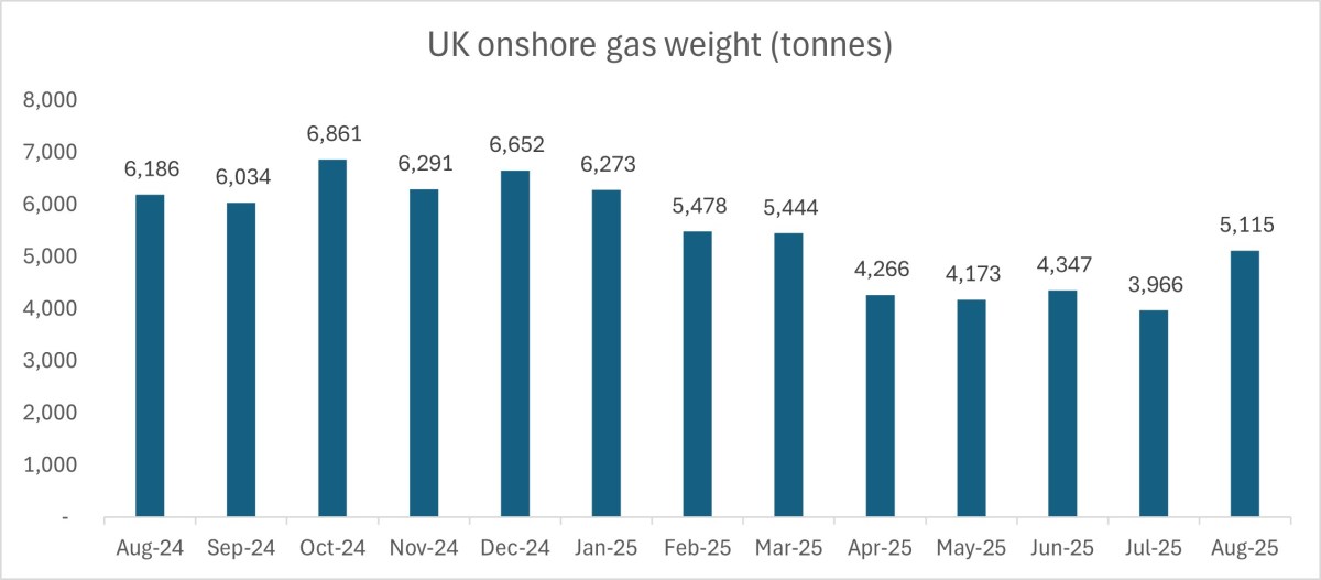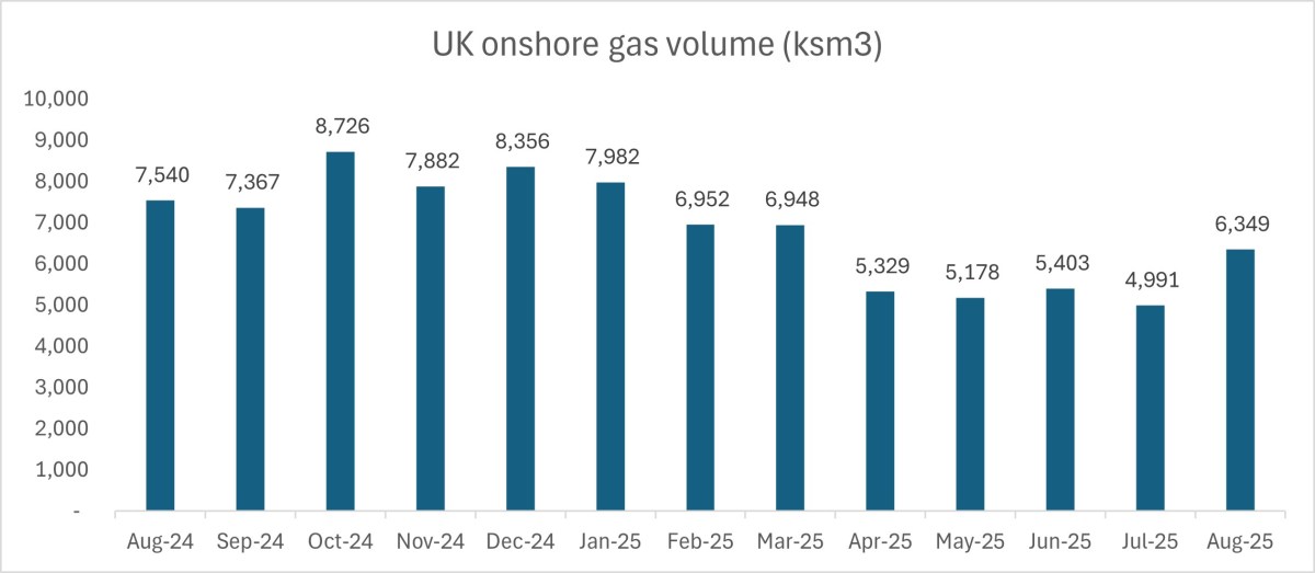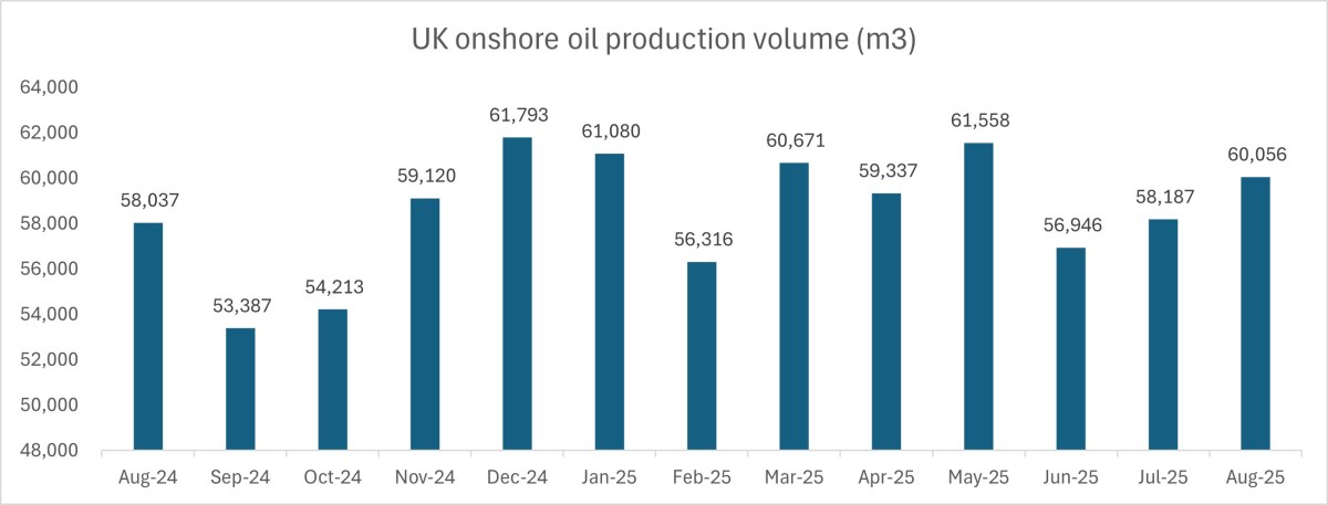UK onshore oil and gas production rose in August 2025 compared with the month before. But volumes did not reach the peaks recorded over the past year.