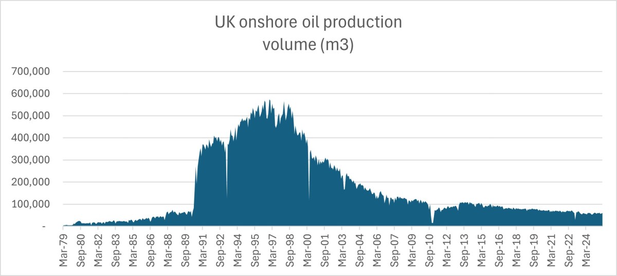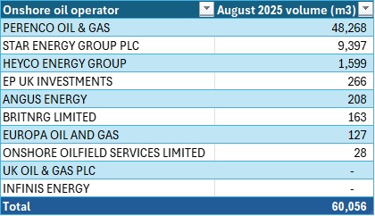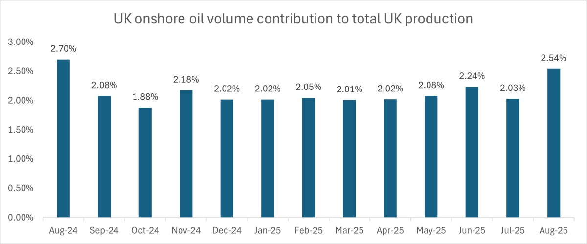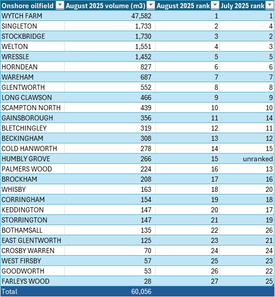 The August 2025 data shows there was no production at 16 UK onshore oilfields. This was one more than July 2025, when there was no production from Humbly Grove.