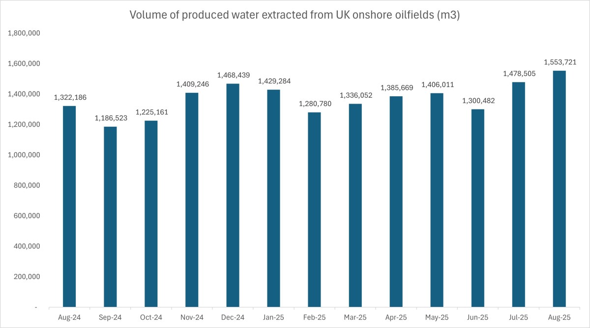 Volume of produced water at UK onshore oil fields: 1,553,721m3