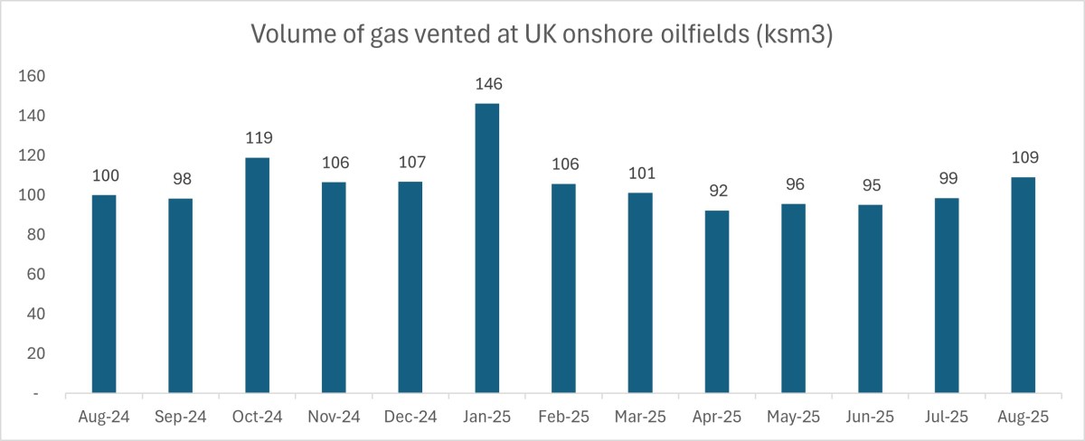 Volume of vented gas at UK onshore oil fields: 109ksm3