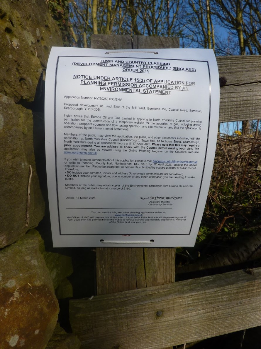 Europa proposes to construct a wellsite on the edge of Burniston, within the heritage coast and near the edge of the North York Moors National Park.