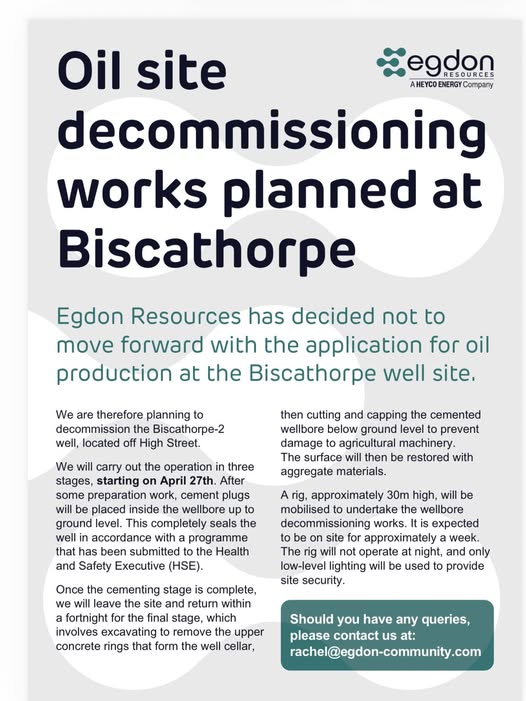 We asked Lincolnshire County Council whether it has received notice of decommissioning from Egdon. We will update this article with the council’s response.