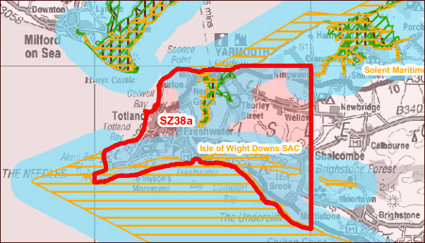 This block has European sites within it, or within 1km of the block boundary. In general, land within approximately 1km of a European site is considered to be of a potentially sensitive nature (due to its proximity to the European site) such that mitigation and/oralternative siting may be required by authorities further considering HRA issues for specific project-level operations. .- In some instances, bird species that are associated with SPAs and some Ramsar sites may rely on non-designated habitats beyond the European site boundaries, and so could be vulnerable to activities occurring outside the designated site itself. Land within 10kmof an SPA, or a Ramsar site designated for its bird populations, is therefore considered to be of a potentially sensitive nature (due to its proximity to the European site) such that mitigation and/or alternative siting may be required by authorities further considering HRAissues for specific project-level operations. The European sites potentially vulnerable in or near this block are Solent & Southampton Water Ramsar, New Forest SPA, Solent and Southampton Water SPA.- Coastal or marine habitat features could be vulnerable to any changes in coastal processes that occur due to activities occurring along the coastline. Land located along the coastline (i.e. within 1km of the mean low water level), and which is also within 10km of aEuropean site with coastal habitats, is therefore considered to be of a potentially sensitive nature (due to its potential connectivity to a European site) such that mitigation and/or alternative siting may be required by authorities further considering HRA issues forspecific project-level operations. The European sites potentially vulnerable in or near this block are Solent & Southampton Water Ramsar, Solent and Isle of Wight Lagoons SAC, Solent Maritime SAC, South Wight Maritime SAC.- Some of European site interest features (e.g. birds species; fish; marine mammals) are potentially sensitive to noise or vibration effects associated with Stage A activities (as well as Stage B, C and D activities). Land within approximately 1km of a European sitesupporting noise or vibration sensitive features is considered to be of a potentially sensitive nature (due to its proximity to the European site) such that mitigation and/or alternative siting may be required by authorities further considering HRA issues for specific project-level operations. The European sites with features potentially vulnerable to this in or near this block are Solent & Southampton Water Ramsar, New Forest SPA, Solent and Southampton Water SPA.