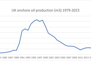 Onshore oil production in the UK fell again in 2023, to the lowest level for more than 30 years.