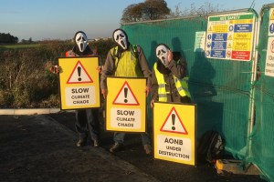 Opponents of oil drilling at Biscathorpe in the Lincolnshire Wolds have protested against the start of site construction work.