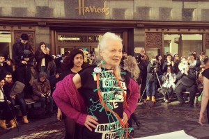 The fashion designer, Dame Vivienne Westwood, turned model this morning in a protest over the injunction acquired by the shale gas company, INEOS Upstream.