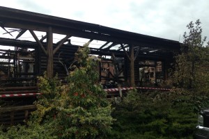 Fire has destroyed the home of an anti-fracking campaigner who is being prosecuted by Fylde Borough Council for displaying posters opposing shale gas developments.