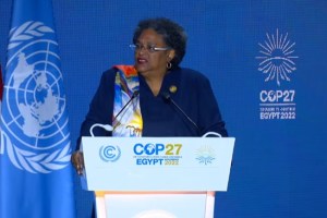 Mia Mottley, the prime minister of Barbados, called today for oil and gas companies to contribute to the cost of climate change.