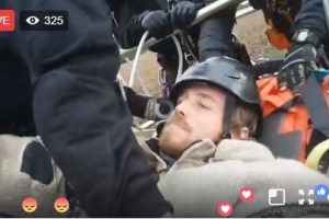 In the past few minutes, police in North Yorkshire have removed an anti-fracking campaigner from an observation tower next to Third Energy’s fracking site at Kirby Misperton.