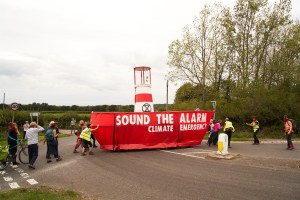 Climate change activists walked in front of a tanker this morning due to collect from UKOG’s Horse Hill oil production site in Surrey.