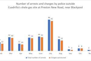Almost half the arrests at protests outside Cuadrilla’s Preston New Road site in 2017 were for obstructing the highway, according to data from Lancashire Police.