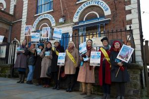 Two women chained themselves to railings outside a Conservative Party building in Pickering this morning in protest at Third Energy’s plans to frack in the area.