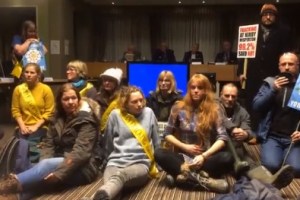In this update on protests about fracking and the onshore oil and gas industry Sit-down protest at Ryedale District Council meeting; Demonstration outside Lancashire County Council and BGS exhibition; Green Party deputy leader visits Kirby Misperton; Tag Barclays campaign; Results of court hearings; Support for North Yorkshire firecrews.