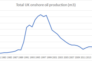 Annual UK onshore oil production has fallen to its lowest level since 2011.