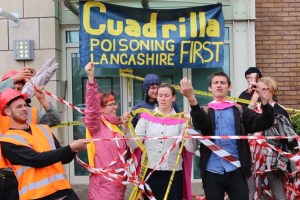 DrillOrDrop’s year in pictures reaches July when the group, Reclaim the Power, co-ordinated protests outside Cuadrilla’s Preston New Road site, the company’s offices and premises belonging to contractors.