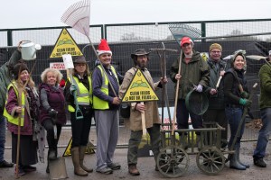 Volunteers with gardening tools gathered outside the Broadford Bridge oil exploration site in West Sussex yesterday (Saturday 23 December) to mark what they said should have been the end of flow-testing.