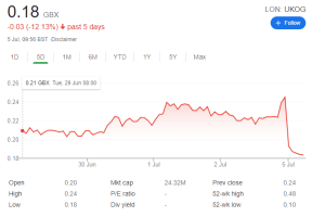 UK Oil & Gas has announced it has raised £5m in a placing, prompting a sharp fall in the share price.