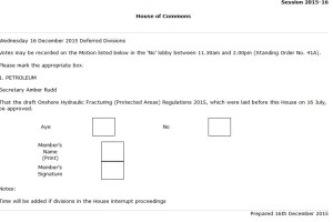 To check how your MP voted in yesterday’s ballot on fracking under National Parks, you can download: This pdf of results FrackingUnderNationalParkVote or This Excel spreadsheet Fracking under National Parks vote. If you are viewing on an android mobile phone try the PDF first. Source: Hansard